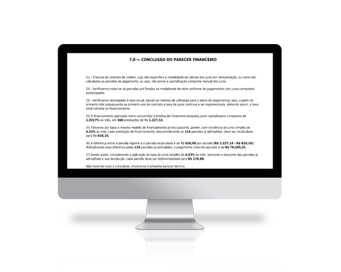 Parecer da taxa de um contrato bancário comparando se a taxa do contrato está mesmo correta.