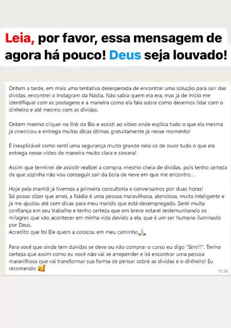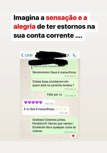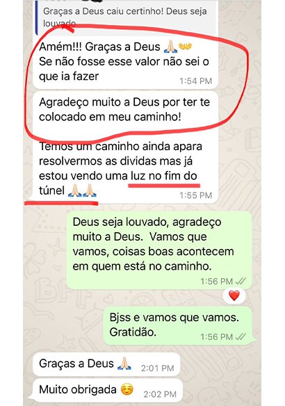 Seguem alguns dos prints que ajudei a sair das dívidas e hoje estão vivendo em paz e realizando os sonhos.