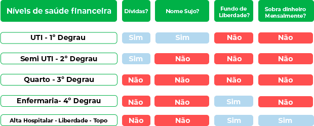 Após ter clareza da sua vida financeira, vamos enquadrar você em qual nível de saúde financeira e adotar o plano de ação que montaremos juntos conforme a sua realidade.