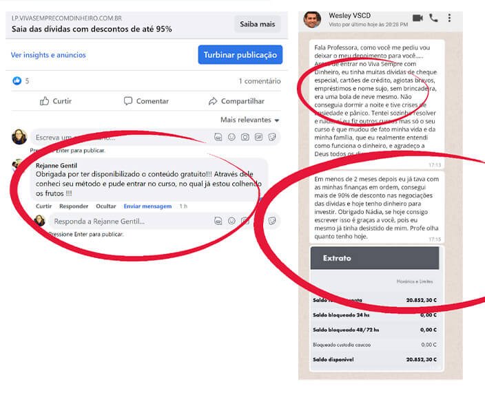 Franciele, estava em uma bola de neve, pensou em tirar a própria vida pelas dividas, viu o nosso anúncio, pegou cartão emprestado para entrar no curso… 2 meses depois aplicando nossos métodos já devolveu o dinheiro e vê o dinheiro na conta bancária… Assista o vídeo e saiba como entrar no curso mesmo sem dinheiro e cartão de crédito.